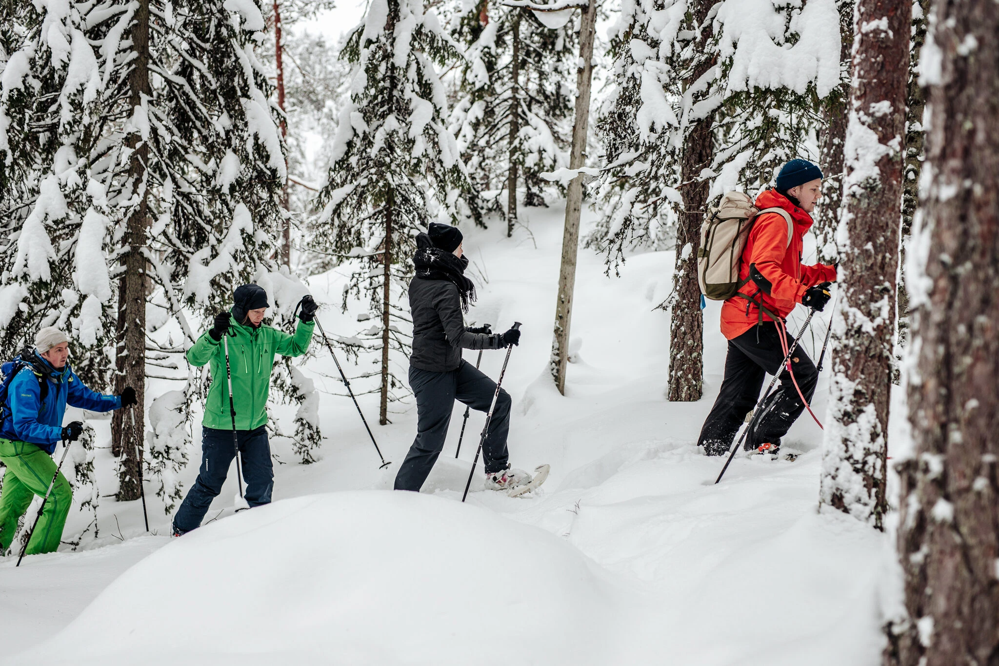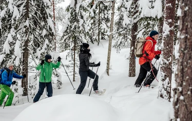 Self-service rental lets you go snowshoeing throughout the winter. Snowshoes can be reserved for a few hours, for a full day or, for example, for 24-hour/overnight trips!