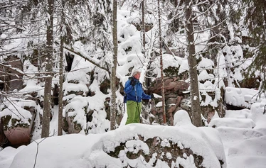 Nuuksio National Park is at its best on snowshoes: varying terrain, dramatic cliffs and wilderness ponds are worth experiencing in winter. Follow the marked trails or quietly make your own tracks across untouched snow — with snowshoes you’ll move with ease even in deep snow and get to explore the park in a way that isn’t possible in other seasons!