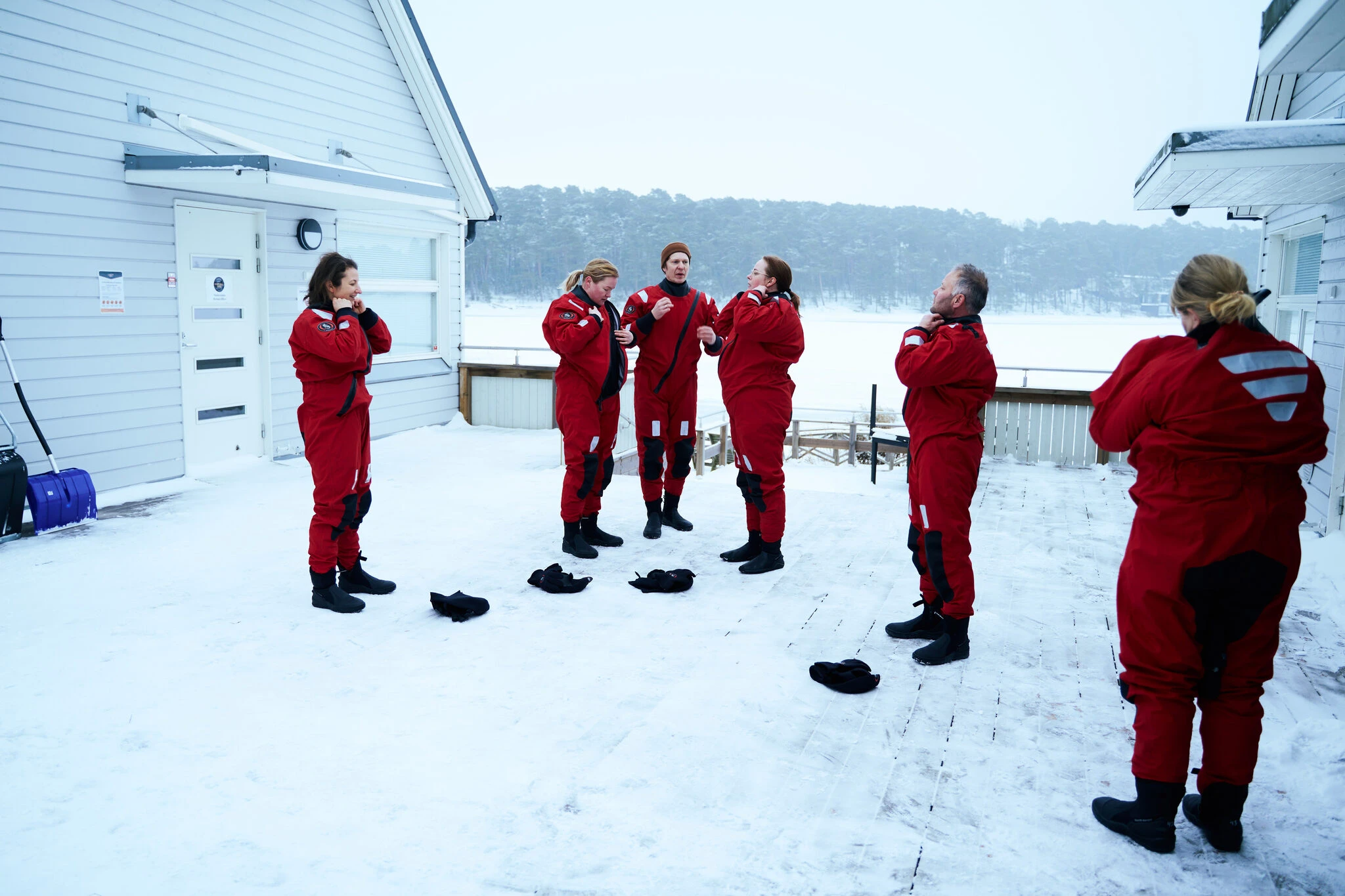 Loppuhetki: Riisutaan kuivapuvut ja vaihdetaan lämpimät päälle.